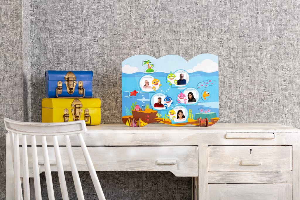 - Your kids have sung the fun ‘do do do do’s for all of the Baby, Mommy and Daddy Sharks, and now it is time to learn beyond! Make your kids dive into their own family relations with as much fun as the iconic Baby Shark song with The Family Tree. Prepare each magnetic tile and stick passport sized pictures of your loved ones on the photo frames. Match the tiles with the relationship mentioned on the magnetic board to complete the tree. Assemble the magnetic family tree by setting it upright on the stand provided. Engage all your loved ones into this fun activity and guarantee some quality family time together.