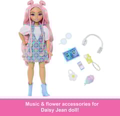 The Barbie Dream Besties dolls encourage kids to share their unique talents with the world, just like Daisy Jean! Daisy Jean dreams of owning her a music label and performing at the biggest music festival – help her chase her dreams with 9 different music-themed accessories, including headphones, a DJ tablet, and phone! The fashion doll also has long, pink wavy hair for styling fun. The Barbie Dream Besties dolls inspire kids ages 4 years old and up to live out their dreams. Doll cannot stand alone. Colors and decorations may vary.