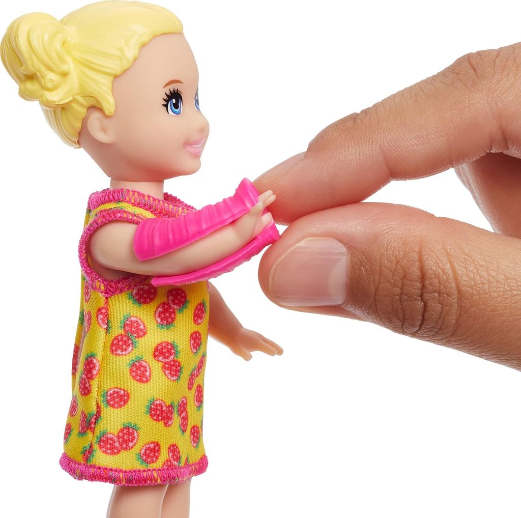 It's check-up time with Doctor Barbie doll and her small doll patient! With accessories like an exam table, stethoscope, a cast (in pink, of course), a clipboard and medical instruments, this pediatrician has everything she needs to care for her patient. Kids can dream big and imagine everything they can become with Barbie Career dolls! Doll cannot stand alone. Colors and decorations may vary.