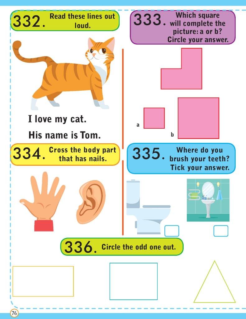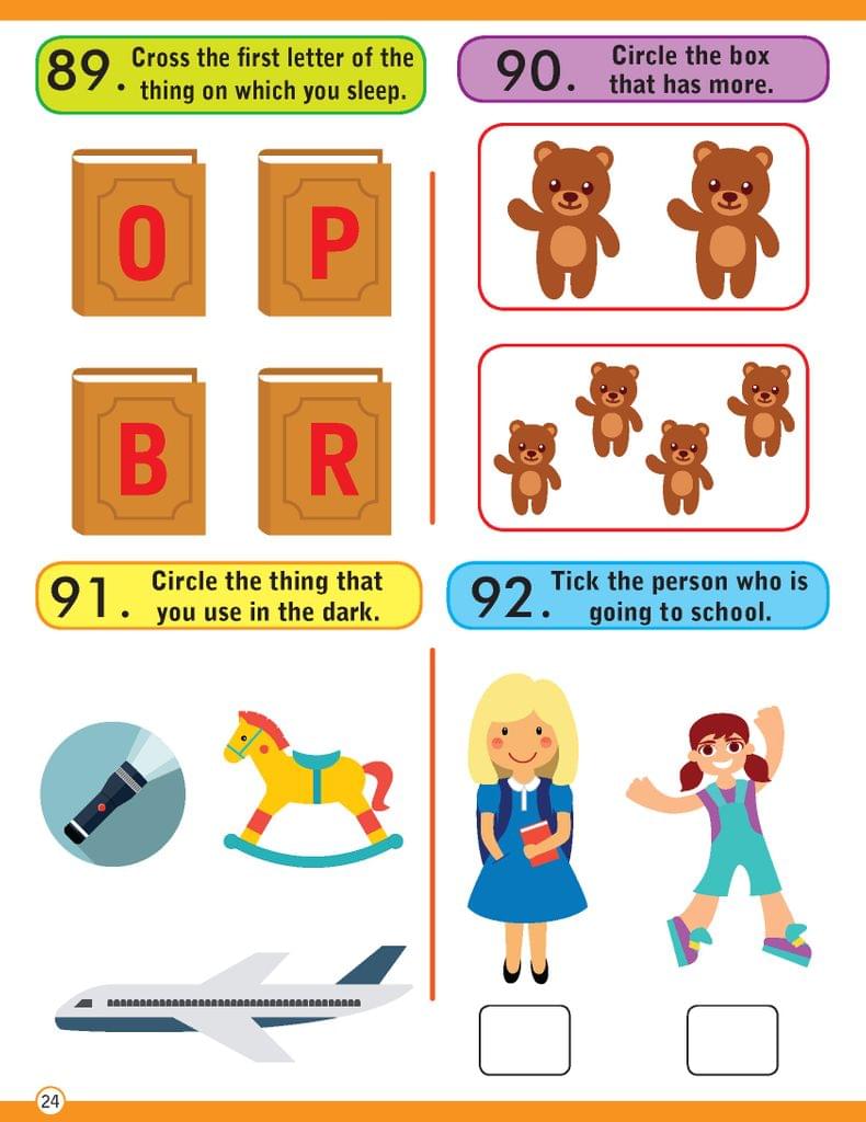 • This book of short mental exercises will help little ones to build up important skills like problem-solving, shapes and letters, sorting, patterns, and many more. Each activity of this book will encourage children to make new neural pathways and have fun with child-centric themes.