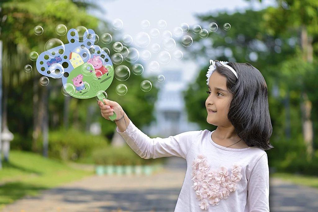 • DIP, WAVE AND PLAY: Playing with Bubbles just got a lot more fun! Includes Peppa Pig Fan Bub, super long-lasting Bubble Solution and a convenient Dipping Tray. Just dip into the bubble solution and wave and play with bubbles all around. Fan bubs is a super fun take on traditional handfans that blow bubbles.