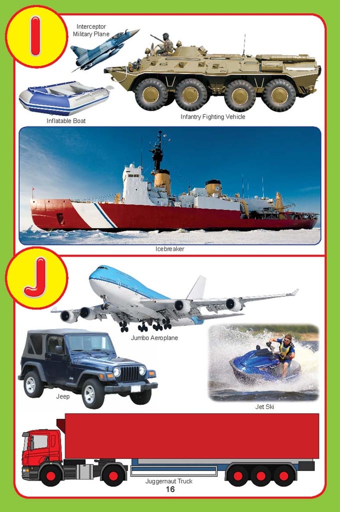 Children will love looking at wonderful and colourful images of vehicles with their names in alphabetical order. Each page combined with bright, colourful picture so a young child would enjoy book words and pictures. Just an amazing astounding for early learners.