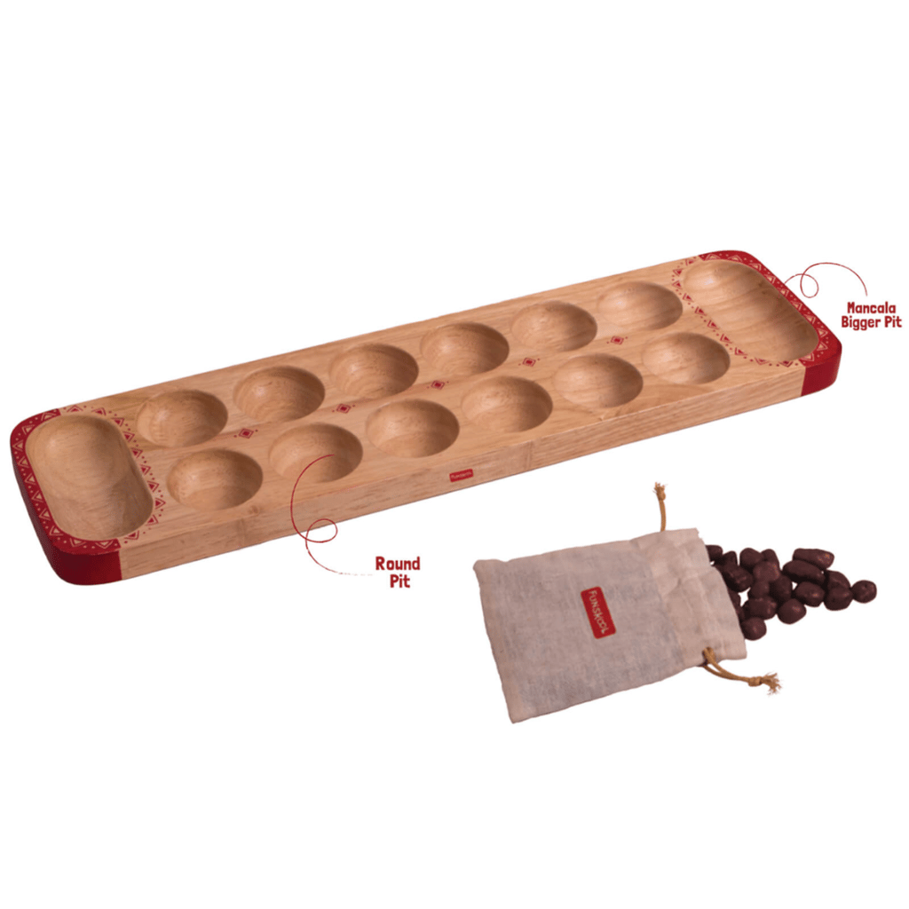 Traditional centuries old Mancala has gained new popularity as one of the world’s most intriguing and clever strategic two-player games. Place pebbles in pits around the board and with just a few easy rules to follow,try to collect the most number of pebbles by the end of the game.Traditional Strategy Game. Sturdy and safe wooden board for children to play. Good quality pebbles