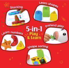 • 5-in-1 PLAY & LEARN TOY – Combines shape sorting, stacking rings, number learning, pretend play, and shape recognition in one engaging cow-shaped toy for hours of fun.