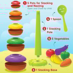 • Bright & Colorful Design – Comes with multi-colored pots in different sizes that help toddlers learn sequencing, size differentiation, and balance in a playful way.