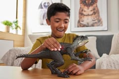 This Ultimate Damage Scorpios rex dinosaur figure brings home the Jurassic World thrills with sounds, damage lights that 'pulse' in vein-like patterns throughout the body with a button activation. With repeat presses, the area delivers THREE LEVELS OF INTENSIFYING DAMAGE and produces different sound effects. Scan the hidden Tracking Code in the free Jurassic World Play App with a compatible smart device (Android or iOS, not included) to unlock a digital version of the dinosaur and access to fiercely fun games! Makes a great gift for dinosaur fans ages 4 years and up. Colors and decorations may vary.