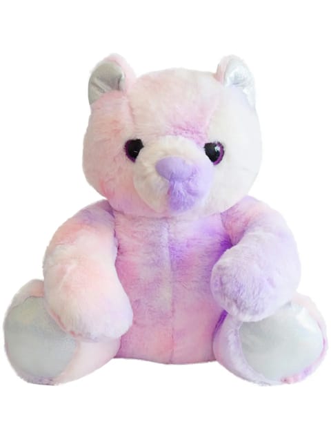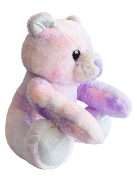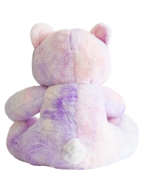 • The high-quality cuddly toy in the form of a bear in the tie dye purple color fabric has a total length of 35 cm.