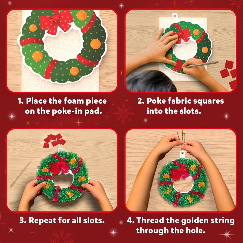 • Let your little artist dive into the holiday spirit with our Poke-in Art: Christmas Decorations! This mess-free activity set is perfect for sparking endless creativity, keeping little hands busy during the holidays. With soft fabric squares and Christmas-themed foam shapes including a wreath, a tree, a star, and a stocking, your kids can make their own holiday decorations. This can also be a great secret Santa gift for kids!