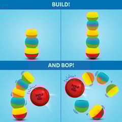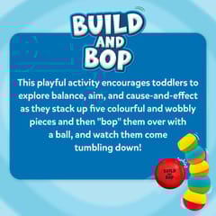 • This playful activity encourages toddlers to explore balance, aim, and cause-and-effect as they stack up five colourful, wobbly pieces, bop them over with a ball, and watch them come tumbling down!