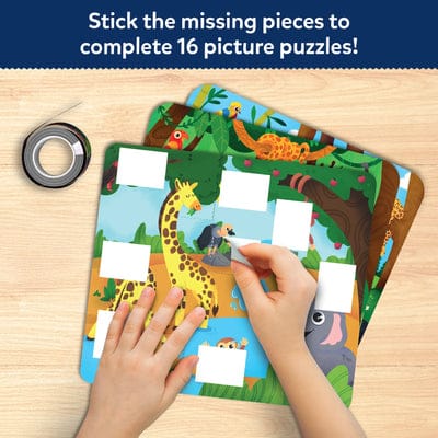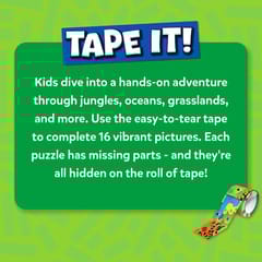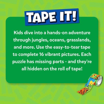 Get ready for puzzle play like never before with TAPE IT! Kids can dive into a hands-on adventure through jungles, oceans, grasslands, and more. Use the easy-to-tear tape to complete 16 vibrant pictures. Each puzzle has missing parts - and they're all hidden on the roll of tape!