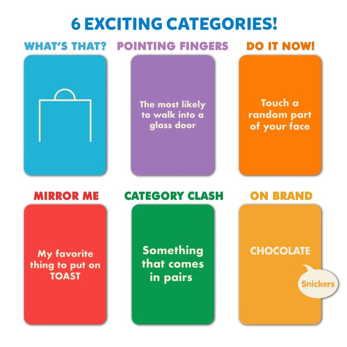 • 6 EXCITING CATEGORIES: With 6 different categories, What’s That, Pointing Fingers, Do It Now, Mirror Me, Category Clash, and On Brand - each round brings a fresh and unpredictable challenge. Match your partner’s answer or move to stay safe; miss the mark, and you risk flipping a letter!