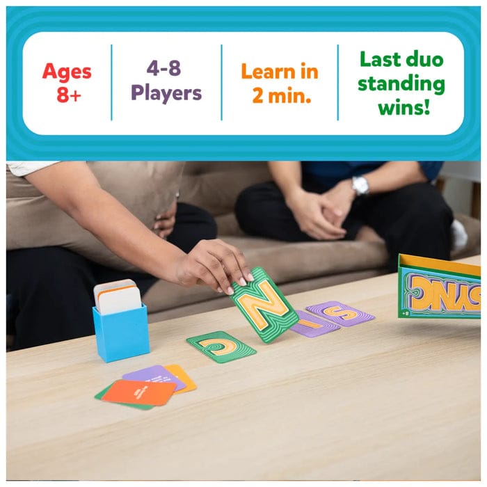 • HOW TO PLAY: Pair up, draw a card, and read the prompt aloud. Countdown: 3...2...1! Match your partner’s answer or action to stay safe. Miss it? Flip a letter. Spell S-I-N-K and your team is out. The last duo standing wins!