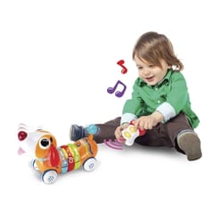 2. Music Mode plays cheerful melodies and fun sound effects. Controller controls forward and backward walking movement. Press the buttons on the controller for many sound effects and fun phrases.As the puppy walks, it turns its head, swings its ears and wags its tail.