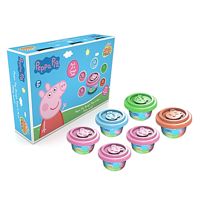• Dough play is fun & creative. Get your hands on our super soft & playable Dough! Shape up your favourite Peppa Pig characters with this pack of 6, 50g Dough tubs, each with 2-in-1 moulding lids.