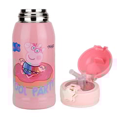 "Hot or Cold, As You Need: Zippy by Youp is a Thermosteel Peppa Pig kids water bottle of 550 ml capacity that is crafted from high quality stainless steel. It can be used for carrying both hot and cold beverages and will retain the temperature of beverages for longer hours. Made from High Quality Materials for Durability: Ideal for kids for both indoor and outdoor use, the Zippy sipper bottle is made from high quality stainless steel which makes it extremely durable for daily use. Additionally, its design and make allows easy cleaning and maintainence. Special Peppa Pig range and attractive design: Zippy is designed in the shape of Peppa, the latest craze among kids. Just like how Peppa Pig is in preschool who participates in many activities and learns new things and has a lot of fun with her family and friends everyday, Zippy aims at instilling the same feeling of fun, frolick and learning in your kid, keeping them happy as always. Apart from water, kids can use it to carry beverages such as milk, fruit juices and more in this bottle and make the most of its unique design. Its cute design and press to open cap with straw makes it easy to use for kids. Furthermore, the availability of a Peppa pig printed zipping cover and color matched strap allows for its easy handling by kids. Its lightweight nature allows you to easily carry the bottle around."